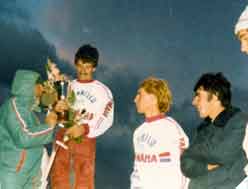 Michel Fischer termine à une modeste 9 ème en 125 Inter et Noblet 19 ème . B. Pascual décroche la 8 ème place en 500 Inter et Titone la 10 ème en 250 Inter. Satisfaction dans les courses par équipes. Betancourt, Perrier, Domergue, Viguier remportent la coupe des Provinces 125cc à Vitrolles. Gomez, Bonnet, Michel, Carrière, terminent 2 ème à Charny dans la coupe des Provinces 250cc. Enfin, nos pilotes 125cc dominèrent l'inter-ligue 125cc. |