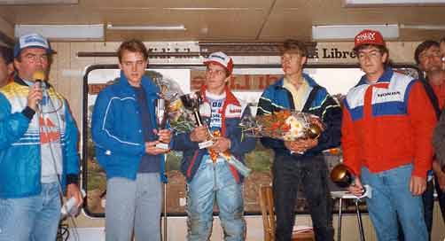 Il arriva sur le circuit à 20H. Il fit un seul tour d'essai. Dès le 1° départ, il chuta, se faisait mal à la cheville... et abandonna ! |