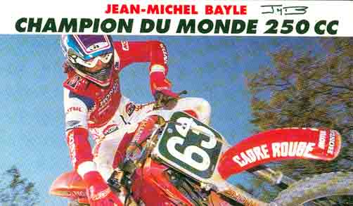 Toujours à Beaucaire, JM Bayle, champion du monde 125, a déclaré forfait ! C'est la 1° fois qu'un champion du monde en titre (et en plus, il est français) ne participe pas à l'épreuve gardoise ! Disputant le championnat américain de SX, une épreuve se rajouta le samedi (veille de Beaucaire) à Miami.Il ne pouvait rouler le lendemain en France. Son père l'excusa au micro. Dommage, qu'il ait attendu deux jours avant la course, pour avertir les organisateurs.